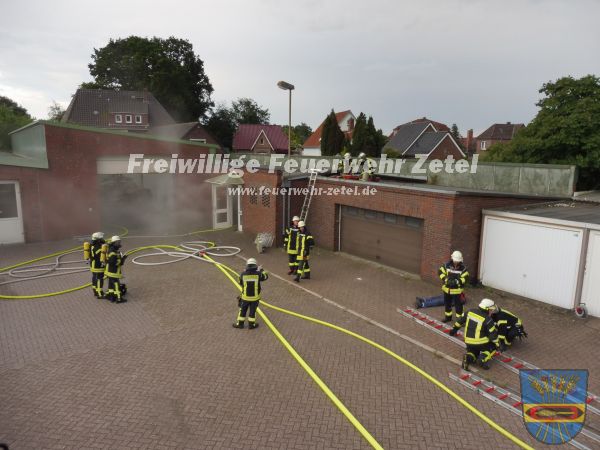 Am Donnerstagabend gegen 19:45 Uhr hatten sich schon einige Kameraden der Freiwilligen Feuerwehr Zetel zum wöchentlichen Übungsdienst eingefunden, als die Meldeempfänger ertönten und die Kräfte zu einer „unklaren Rauchentwicklung“ in die Fritz-Frerichs-Straße alarmierte.
