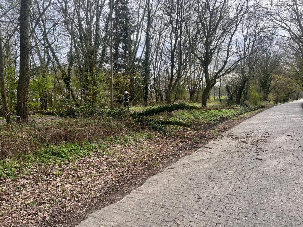 Ein Baum ist auf einen Teil der Pohlstraße sowie auf den parallel verlaufenen Radweg gestürzt.