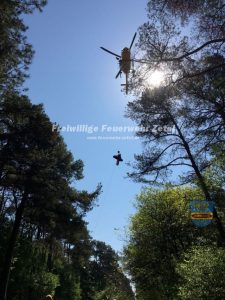 Da der Verdacht bestand, dass die verunfallte Reiterin schwere Verletzungen erlitten hat, aufgrund dessen haben sich die Retter dazu entschieden, die Reiterin nicht mit dem Fahrzeug der Freiwilligen Feuerwehr Zetel aus dem Waldstück zu fahren, sondern mit Hilfe der Seilwinde des Rettungshubschraubers Christoph 26. Diese Art des Transportes ist wesentlich erschütterungsärmer.